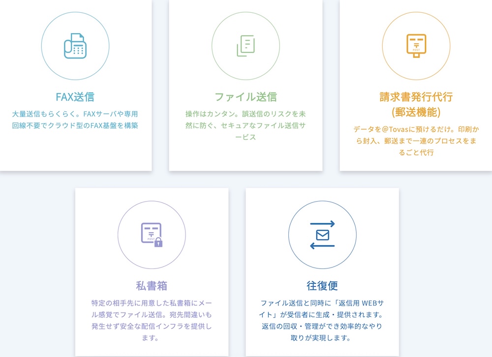 @Tovasは、請求書や納品書などの経理業務で必要となる帳票を、さまざまな形式で自動送信出来るクラウドサービスです。
