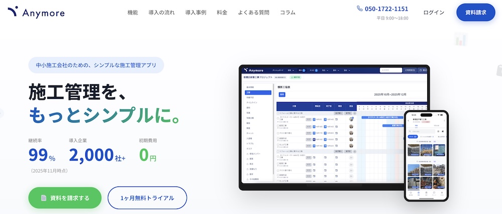 - 導入社数が多く、施工管理全体まで拡張できる安心感