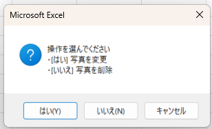 | いいえ | 写真を削除して、空欄に戻します。 |